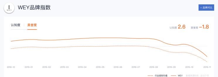 对于一个豪华品牌而言,品牌力是第一要素。就像魏建军所说,现在是追求品牌的时代,注重“面子”。汽车之家大数据显示,WEY近一年的认知度表现也保持在行业水平之上,但近期的表现有所下滑。而产品力、经销商以及营销手段是最直观可以体现知名度和美誉度的有效途径。