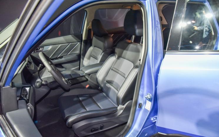 新车座椅采用皮质材质包裹,前排主驾驶支持六向电动调节,后排提供三个头枕及中央扶手,且中间地板凸起不明显,对于后排乘客的乘坐舒适性也照顾的很周到,这点表现不错。