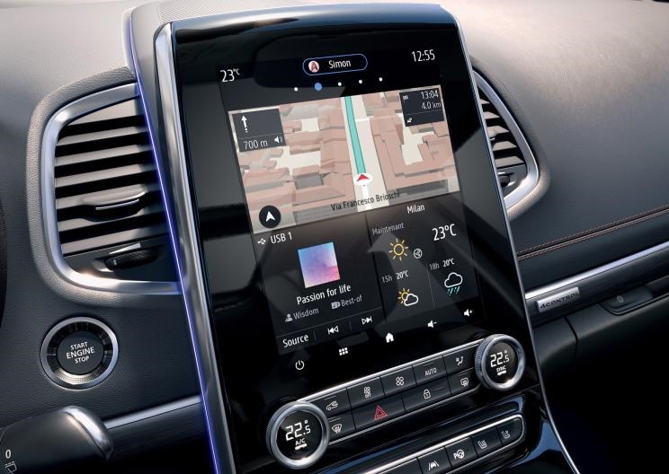 多媒体系统方面,新款Espace的9.3英寸中控屏搭载最新版雷诺EASY LINK系统,支持App拓展、自动升级、车辆远程控制、可定制交互界面,同时提供Android Auto和苹果CarPlay手机互联功能、谷歌地址搜寻导航、油价和路况实时查询等功能。其中,基于My Renault App实现的车辆远程控制功能包括车辆定位、导航行程同步、车门锁开闭,以及闪灯鸣笛。另外,带有5种声场模式的BOSE高级音响在新车上也有配备。