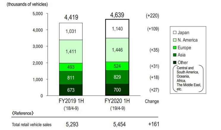 上述数据显示,2019年4月至2019年9月份,丰田汽车全球销量达到545.4万辆,同比增长了3%,包括日本本土市场、北美市场、欧洲市场及包括中国市场在内的亚洲市场都有不错的增长。