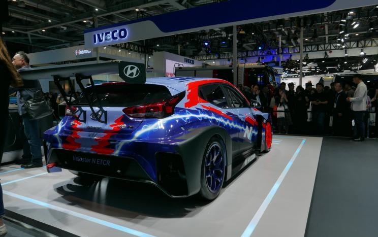 2019进博会上,现代Veloster飞思(参数|询价)N ETCR纯电动赛车在国内首次亮相。新车曾于9月全球首发,基于Veloster飞思N高性能版改造而来,采用四电机后驱布局,与之配合的是65kWh容量、800伏特电压的动力电池。