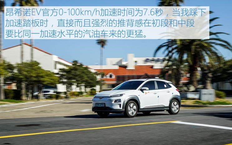 KONA Electric配备了一台最大功率150千瓦的电动机,峰值扭矩达395牛·米。在踩下加速踏板时,它强有力的推背感在0-60km/h时特别明显,这也是得益于电动机直接施加的扭矩,一般城市里代步开起来会比汽油版昂希诺更爽一些。