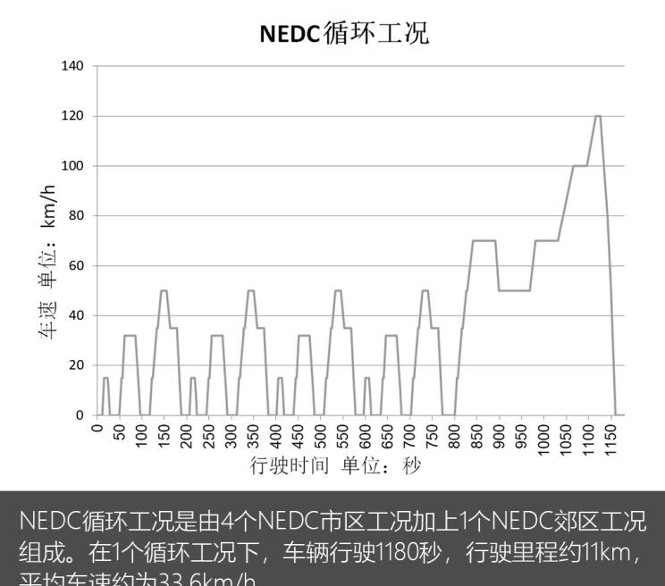 聊到这里,可能有些朋友会有这样的疑问,既然帝豪EV253车型有大约10%的电池容量变化率,为什么车主还说并没有明显的感受呢?这就要顺便聊一聊续航里程标定的那些事儿了。在帝豪EV253车型做车辆准入时,续航里程标定是按照完整的NEDC工况进行测试的,即按照4个城市工况的大循环测试,直到电池电量耗尽时,测得的续航里程作为官方标称的续航里程。