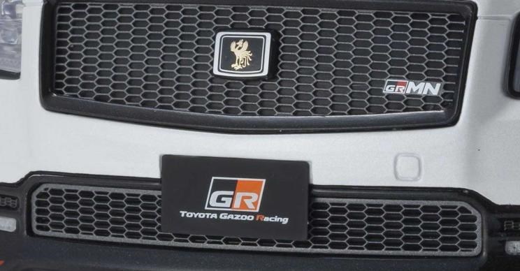 透过车窗,我们可以看到中控台上那些细微的小细节,仪表盘、中控屏上那只金凤凰、方向盘多功能按键和各种细小的按键都体现的很清晰。丰田并未透露过多世纪GRMN的细节,但京商称这款车虽然外观相当运动化,但保留了空气悬架,19英寸BBS锻造轮圈搭配优科豪马Advan Sport V105轮胎,这些细节在这款模型上也追求极高的还原度。