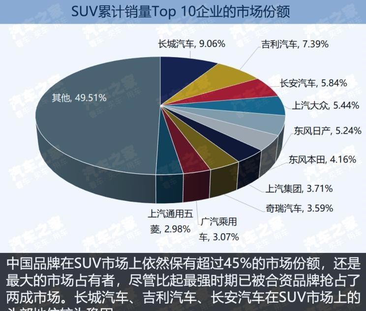 本期选取分析车企的标准是今年同比上涨的那些企业,看其旗下哪些车型是其逆势而动的支撑。另外由于吉利汽车旗下有车型销量排在榜单第二位,因此对吉利汽车的SUV板块表现也加以了分析。