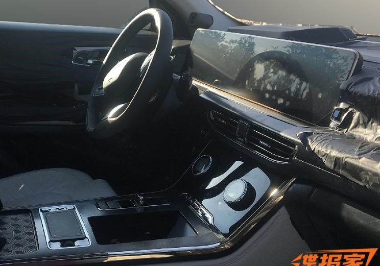 内饰方面,新车中控台配备了由全液晶仪表与中控显示屏组成的一体式大屏,从而营造出极具科技质感。同时,该车中控屏下方为横向空调出风口以及两个控制旋钮,整体十分简洁。此外,新车将匹配电子挡杆,并在车内多处采用钢琴漆饰板以及缝线皮革,整体质感和科技感都得到了保证。