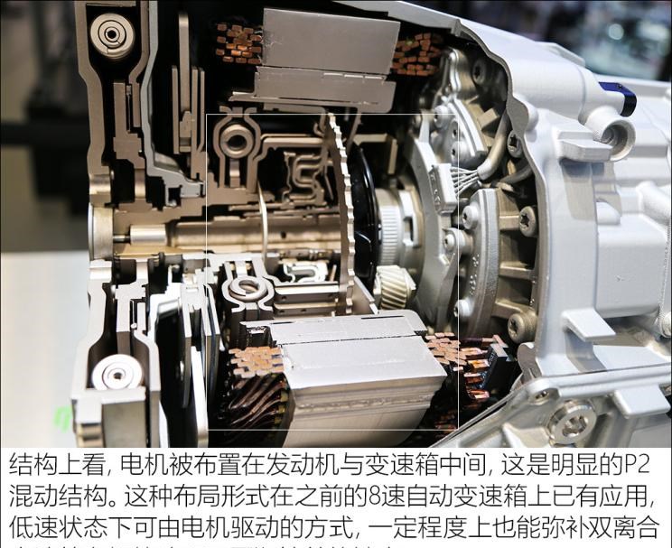 由于其定位为满足性能车、跑车使用需求,因此与一般车型混动变速箱相比,纯电极速以及输出表现需要更优秀。工程师表示电机的峰值输出可达到100kW,扭矩400N·m,仅依靠电机输出,车辆极速可以达到140km/h。
