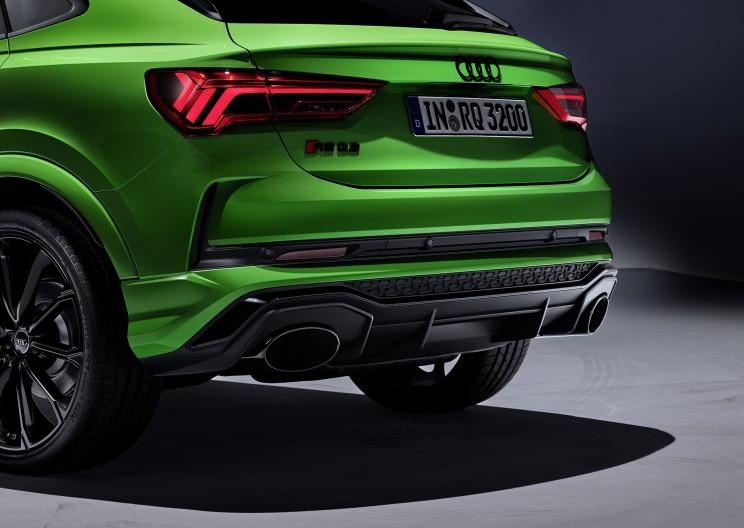 车尾部分,新RS Q3相比新Q3最大的改变当属扰流板和后包围部分。其中,车顶扰流板采用了三段式折线形设计,且尺寸更大。更大的变化发生在车尾底部,重新设计的下护板上增加了更夸张的扩散器和与新RS 6 Avant相似的银色饰条。而身为RS家族车型,双边共两出式椭圆形镀铬排气也没有缺席。