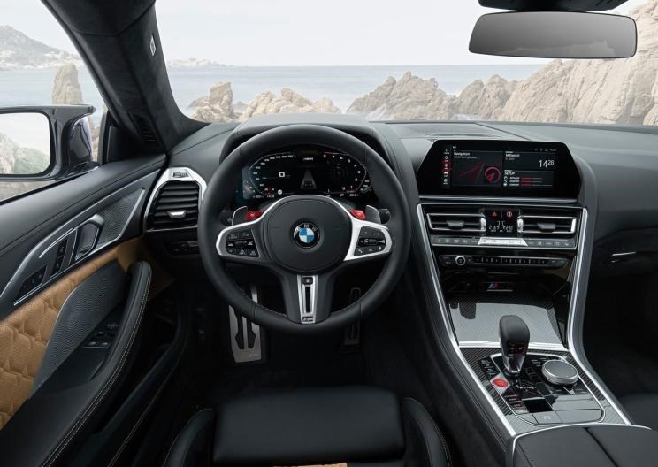 相比M850i,M8的内饰变化不大,仅配色进行了调整,搭配双色调真皮M运动座椅、M标识套装、M运动方向盘、预存驾驶模式切换按钮、红色一键启动按钮、碳纤维中控面板、M主题化的全液晶仪表盘及中控车机等,将运动性和豪华感做出了进一步的贯彻。不过,8系上的水晶电子挡把在M8车型上被传统样式皮质包裹的挡把代替了。此外,新车还配备了16扬声器的宝华韦健钻石环绕音响系统。