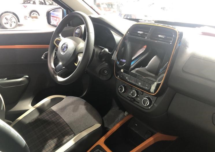 新车的内饰更是与雷诺e诺如出一辙,整体设计简洁时尚。可以看到,新车中控台采用了撞色设计,同时配备了旋钮式换挡机构、中控大屏,以及配色和质感比较个性的织物+仿皮拼接座椅,看起来比较独特。另外,新车还配备了机械手刹和手动空调,看起来还是略显原始了一些,预计未来售价会非常亲民。