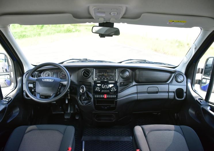 内饰方面,新车内饰的整体风格相对质朴,采用大面积黑色系进行搭配,用料与设计风格符合其商用车的定位,变速箱挡把位于中控台上。为了满足不同用户的出行需求,新款依维柯欧胜设置了多种座椅布局,满足多样驾乘需求。