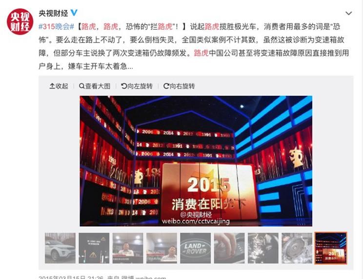 而4G网络的速度不仅仅体现在产品推广上,也体现在当负面来临时的传播速度。在上述时间段,被称为“网红鼻祖“的揽胜极光并没有将注意力放在那里,而是被变速箱故障投诉以及后期的315晚会曝光事件忙得不可开交。