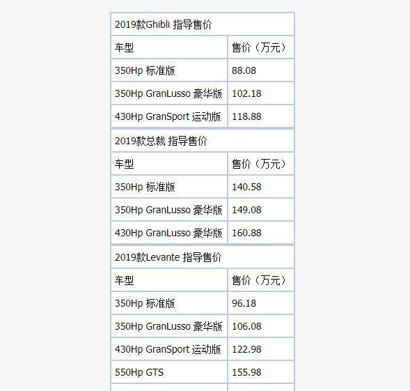 玛莎拉蒂:2019款全系列车型发售啦,售价88.08万余元发展!