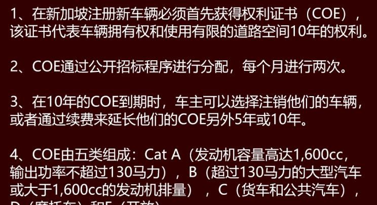 从最新一期的COE投标结果来看,A类COE价格为25689元新币,期限都是只有10年,比上海、深圳和广州拍牌的价格都要高,也是造成新加坡高车价的原因之一。