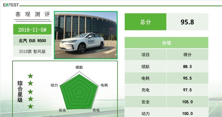 2019年1月15日,2018年EV-TEST第二批新能源车型测评结果发布,涉及6款车型。其中广汽传祺GE3(参数|询价) 530、比亚迪宋EV500、北汽EU5、东南DX3 EV400归为常规车型组;长安奔奔EV260、上汽通用五菱宝骏E100归为微型车组。综合来看,除了东南DX3 EV400外,其余车型评分均在90分以上。