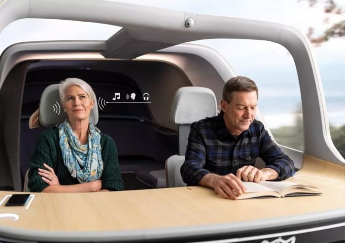 Noveto智能音频控制:可将声波直接传输至听者的耳朵里,通过智能感应器、转换器和软件结合,识别并追踪乘客位置,且不同乘客之间不会产生相互干扰。与传统定向音频技术不同的是,Noveto智能音频技术更加适用于限定空间。