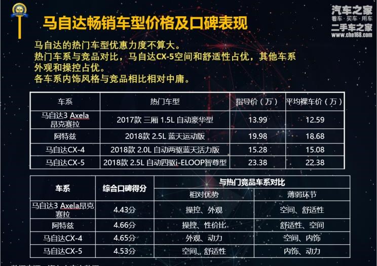 ★ 马自达畅销车价格及口碑表现