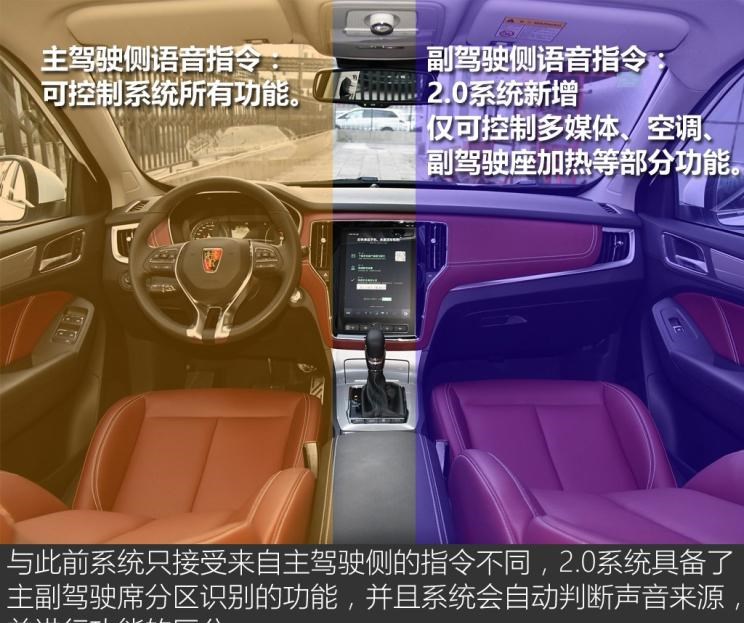 升级后的荣威和名爵车型,实现了主副驾驶位置分区识别语音的功能,座椅加热、空调温度调节等都会根据语音发自的位置进行分区调节。同时,支持连贯语音指令控制、场景指令控制。甚至还支持了添加无人机等智能设备等功能。