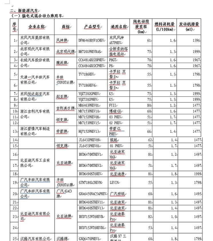 『可享受车船税免征政策的25款插电式混合动力乘用车』