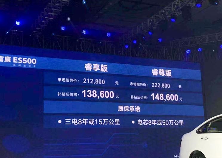 富康ES500指导售价车型补贴前指导价睿享版21.2813.86睿尊版22.2814.86