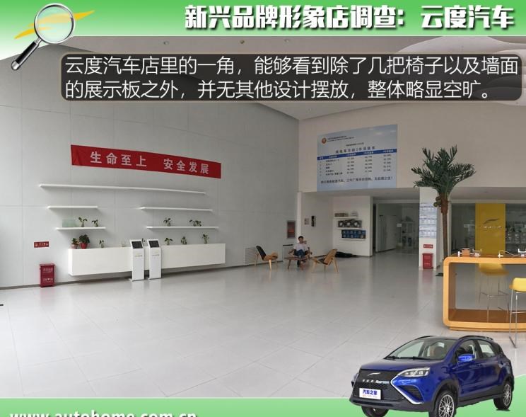 整体来看,云度汽车的展厅略显空旷,我个人认为是弊大于利的,作为消费者在购买车辆时,经销商的服务态度以及店内现状都会影响消费者购买欲望,毕竟买车算是家中一笔不小的开支,如果新兴品牌在本身缺少用户信任感的情况下,还进行这样的店面布局,只会让消费者觉得购车没有他们想要的“保障”。但其实,就云度目前产品矩阵来讲,旗下云度π1和云度π3均已上市,云度π7也于2018北京车展中亮相,既然作为一家品牌的经销商,完全可以将这几款车型摆放到店面之中,这样既可以做到“撑门面”的效果,也可以丰富消费者的选择并且打消其没有“保障”的顾虑。