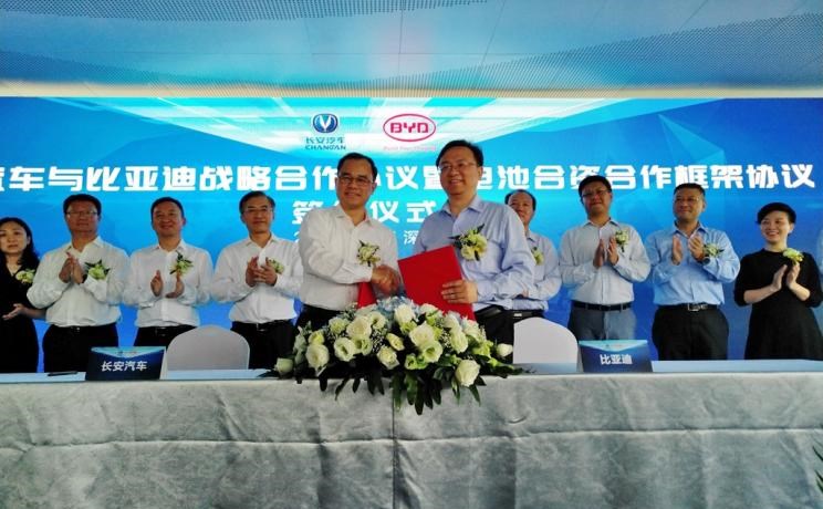 2018年7月5日,长安汽车与比亚迪正式签署战略合作协议暨电池合资合作框架协议。双方将联合各自在新能源、智能化、海外市场、共享出行等多个领域的优势资源,开展从业务到资本层面的全方位合作。