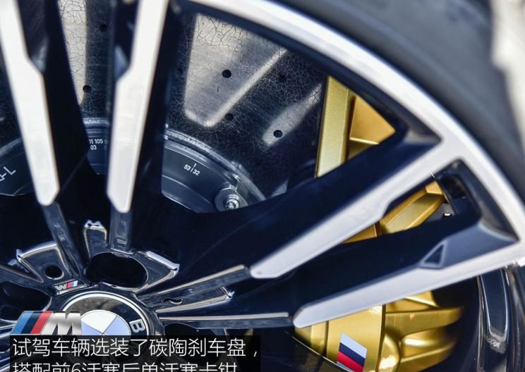 制动系统也做出了全方位升级。全新M5标配复合制动系统,采用前6后1活塞,前后制动盘尺寸分别为395×36毫米、380×28毫米。相比传统钢制刹车盘,M 复合制动系统采用钢-铝复合部件,单盘减重高达6.5公斤。与此同时,M5还提供碳陶瓷制动系统选装,前制动盘尺寸增至400×38毫米。制动盘表面附有经1700度高温烧结形成的碳纤维增强碳化硅涂层,因此兼具碳纤维的强度,在M复合制动系统基础上单盘再减重6.25公斤,热稳定性和抗腐蚀性更强。