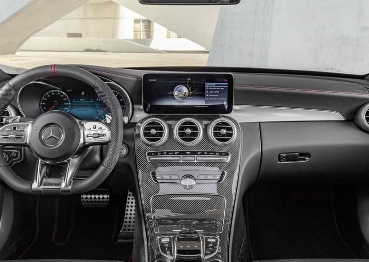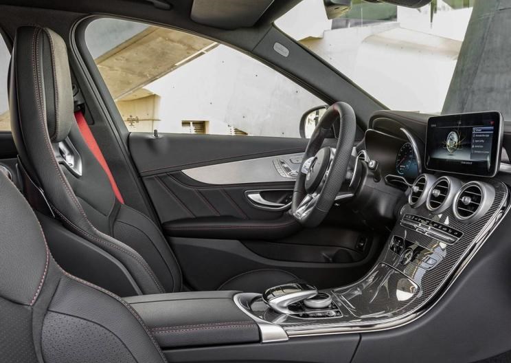 内饰方面,新车保留了新车C级普通版车型的设计风格,同样换装12.3英寸全液晶仪表盘,同时中控液晶显示也将升级至最大10.25英寸。而不同之处在于,新车换装了全新三辐式平底方向盘,座椅、车门内饰板以及中控台采用了红色缝线处理,加上碳纤维样式的中控饰板,营造出强烈的运动色彩。