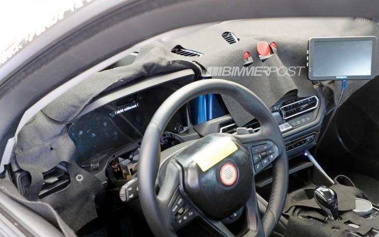 目前测试车依旧采用了伪装布对车内进行遮盖,但由于测试的需求,很多主要细节都有所曝光。首先要提的是这款车搭载了全新的液晶仪表盘,并且匹配了HUD抬头显示系统。在中控部位,空调出风口以及按键控制区相比于现款车型都有所下沉,为上方的中控屏留下更大的空间,经典的悬浮式中控屏预计会采用全新的设计。此外,空调出风口也采用了全新的样式,更加有设计感。