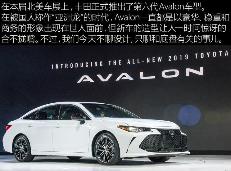 说到丰田Avalon,很多朋友可能会觉得有点陌生,但其实在很多年前,国人按照英文发音给这款车起了一个牛气冲天的中文名儿:亚洲龙。对于这个名字,相信很多60-90后的朋友们应该都有所耳闻。尽管Avalon已经远离国内市场很久了,但威名和情怀仍在,而且已经传出了将要国产的消息,这样一来,刚刚在2018北美车展亮相的最新车型就很值得关注了。所以在看过了外观内饰和空间体验后,我们今天来聊聊它的底盘结构。