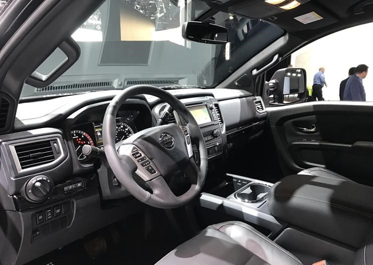 Titan午夜版车型全车采用了黑色的套件,黑色的进气格栅、大灯也采用熏黑处理,此外新车车门把手、外后视镜壳、前后包围、20英寸轮圈等等也都使用了黑色设计。此外,新车还在侧面脚踏板处增加了标志性铭牌。