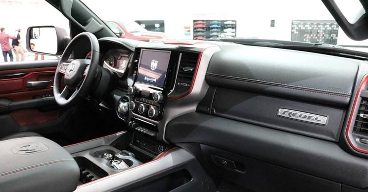 内饰方面,全新一代Ram 1500的内饰设计变化较大。在细节方面,新车将根据车型的不同提供8.4英寸和12英寸两种中控液晶屏。其中换装了12英寸液晶屏的车型,由于大屏的加入取代了部分功能按键,在提升实用性的同时还增加了几分科技质感。此外,该车中控屏两侧的空调出风口依旧维持了现款车型的风格,不过边角更加平直。值得一提的是,现款车型中控屏下方的一些实体按键被改为拨片式设计,看起来更具运动特性。
