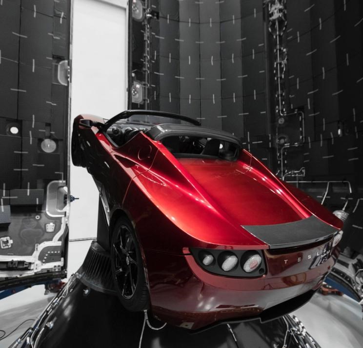 埃隆·马斯克计划用猎鹰重型运载火箭(Falcon Heavy)将这辆红色的特斯拉ROADSTER送入火星轨道,如果发射时没爆炸,该车将随着太空船围绕太阳轨道运行,等到达远拱点时再切换速度进入椭圆形火星轨道,绕飞超过10亿年!