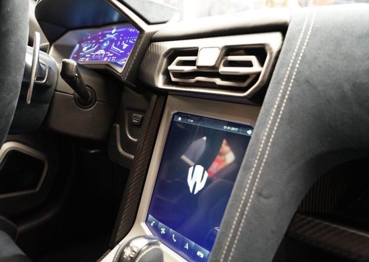 此外新车作为一款豪华超跑,像车载蓝牙、3G网络、前后倒车雷达、倒车影像、内置硬盘、豪华音响系统等均有配备。同时两把极具设计感的碳纤维+皮革+铝合金运动座椅,由W Motors定制而成,并且在头枕上锈有芬尼尔的英文LOGO。
