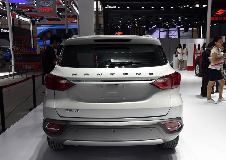 车身侧面来看,新车在BCD柱均采用亮黑色涂装,使车辆营造出当下流行的悬浮式车顶设计。此外,车门下方的黑色的车身包围,也让该车增添了些许的越野味道。尾部方面,其整体线条设计较为简单,并在尾窗下方采用“HANTENG”字样标识。