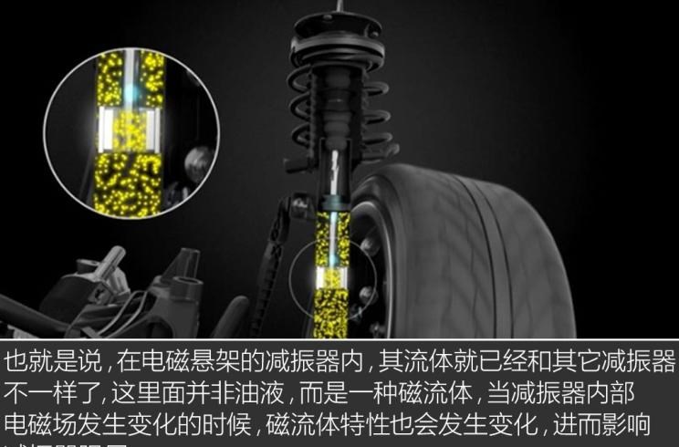 这样的减振器与DCC悬架系统最大的不同,就是在改变阻尼特性方面,采用了不一样的原理。虽然从效果上来看,二者都是改变了阻尼大小,但从反应速度上来说,电磁悬架所用的减振器有着绝对优势:一旦电磁场发生变化,内部磁流体就会瞬间产生变化,而CDC减振器的电磁阀开闭理论上是需要时间的,即便达到了毫秒级,它也无法媲美电磁变化的速度。