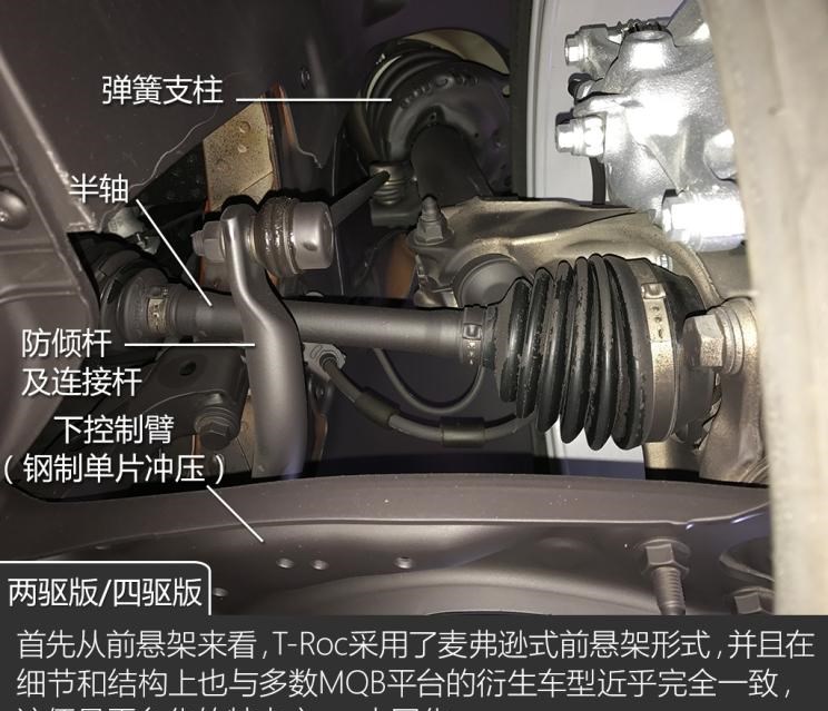 平台化就是这样,虽然前期开发成本高,但一次成型全家受益,从小型车到中型SUV,所有MQB平台下的车型在前悬架方面确实没有什么大的不同点。