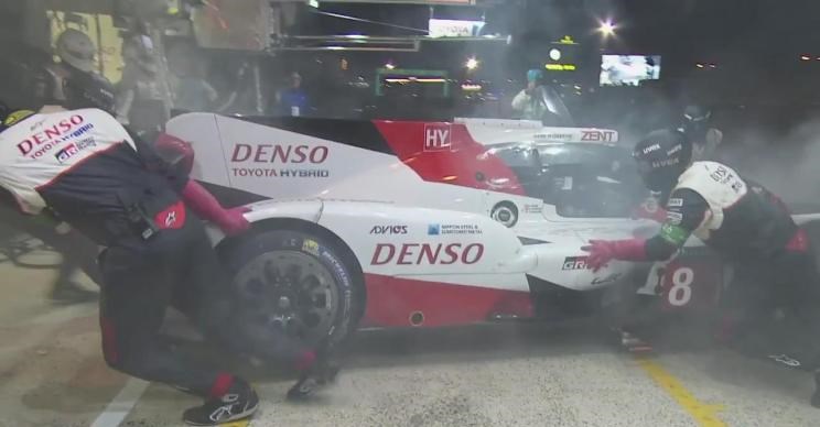 比赛进入到第8个小时,位于第二名的8号丰田赛车进站维修时,右前制动系统冒烟,被维修技师及时扑灭并推入Pit维修,1号保时捷赛车顺势升至第二名,并与7号丰田赛车大约有45秒的差距。