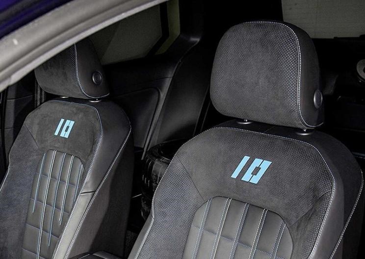 走进这车内,这款车整体以黑色为主,不过在空调出风口、方向盘、车门内饰板等部位都加入了蓝色的装饰,副驾驶前方的面板上会标有First Decade字样,凸显这款车的身份。这款概念车的座椅为手工打造,采用Nappa/Alcantara材质拼接,靠背上则绣有数字10。这款车的另一个亮点是安装了一套高端音响系统,功率为1690瓦,由11个扬声器、一个超低音扬声器组成。