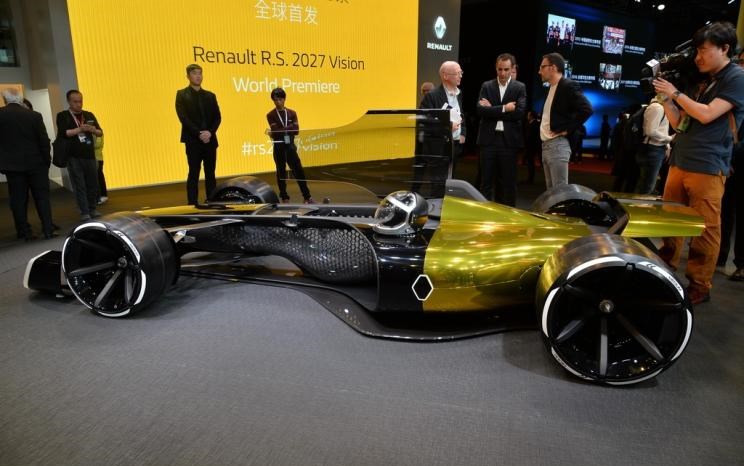 2017上海国际车展,法国汽车制造商雷诺首次发布了其对未来F1赛车的愿景——Concept R.S.2027,一辆仅重600kg,却拥有1340马力的概念赛车。