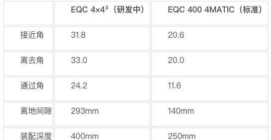 数据信息上看来,基本上全部的越野版本车型的距地空隙,EQC 4×4都胜于专业版的EQC。