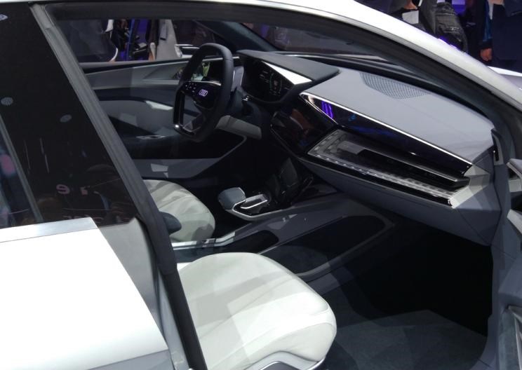 作为一款概念车,新车的内饰十分科幻,其仪表盘和中控台都配备了大尺寸的液晶显示屏,科技感十足。同时,该车方向盘中央的奥迪LOGO还可以发光,视觉效果十分炫酷。
