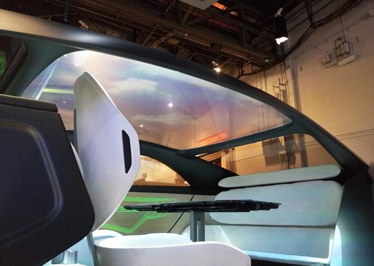 在车内,才是这款自动驾驶概念产品的核心所在,其车内采用了四座布局,前排座椅可以向后反转,中央的“桌子”由四块液晶显示屏组成,车内乘客通过液晶屏来控制各项功能,这样的理念十分新颖。