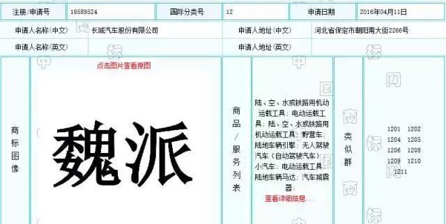『“魏派”商标注册信息』