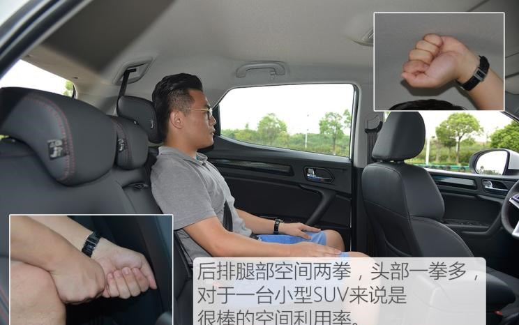 在车内空间方面,通过此前编辑的实际体验来看,身高174cm的体验者在前排座椅可获得一拳多的头部空间;在座椅相对位置不变的情况下来到后排,头部空间同样为一拳有余,腿部空间达到了两拳,对于一款小型SUV来讲,其车内乘员的乘坐空间表现较为不错。