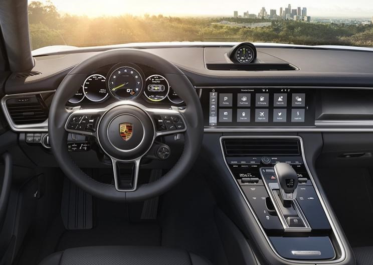 Panamera 4 E-Hybrid与全新Panamera汽油版车型外观保持一致,内饰方面,Panamera 4 E-Hybrid同样拥有保时捷全新座舱设计,并配备了混合动力系统专用显示仪表。新车中控台处12.3英寸触摸屏的信息娱乐系统,也可显示混合动力系统的相关信息。此外,混合动力专用的驾驶模式将加入Sport Chrono组件,并作为Panamera 4 E-Hybrid的标配功能。