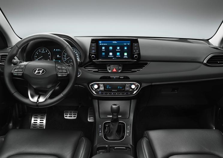 进入车内,新一代i30内饰布局仍具有明显的现代家族风格,提供纯黑内饰和黑灰双色内饰可选。新车中控台中央配备了独立式中控液晶屏,支持苹果CarPlay、Android Auto车机互联功能。配置方面,新车具备无线充电、主动紧急制动、自适应巡航、车道保持辅助、驾驶员注意力警示和盲点监测等功能。