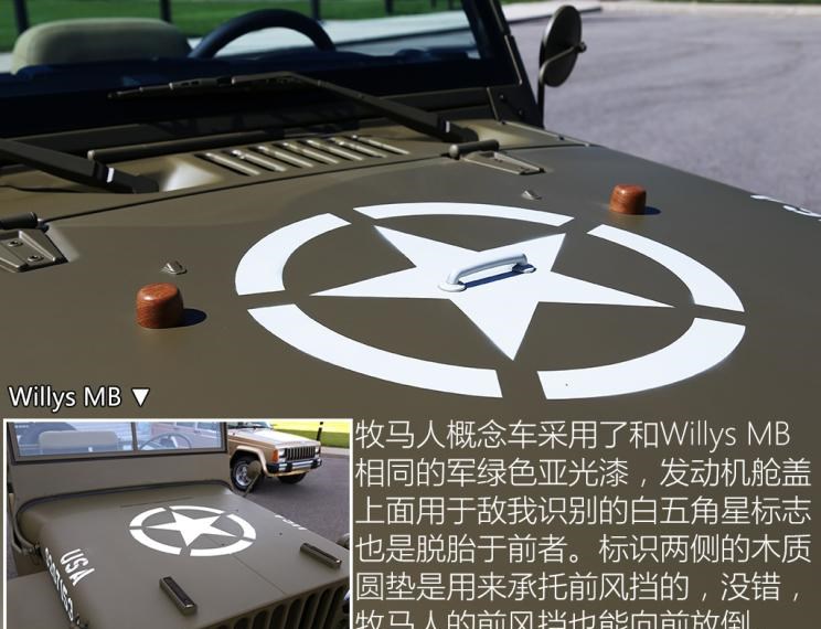概念车是什么?它是一个汽车厂商用来展示新技术、新设计的平台,从概念车的身上,我们往往能看到这个品牌乃至整个汽车行业未来的发展方向。然而凡事总有例外,这一次Jeep带来的牧马人75th Salute Concept Vehicle就没有任何新设计、新技术,相反,它却使用了很多早已淘汰的元素和配件。其实这台车出现的目的就如它的名字一样——致敬,而它致敬的对象,正是75年前的Jeep品牌始祖,为人类自由战争立下汗马功劳的老兵——Willys MB!