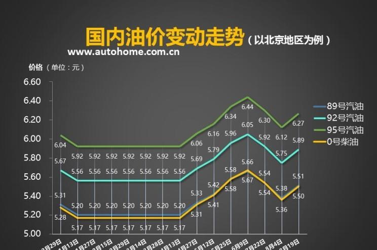 8月18日,国家发改委发出通知,决定将汽、柴油价格每吨分别上调175元和170元,测算到零售价格90号汽油和0号柴油每升分别上调0.13元和0.15元,调价执行时间为8月19日0时。本次调价是国内油价今年以来的第5次上调。