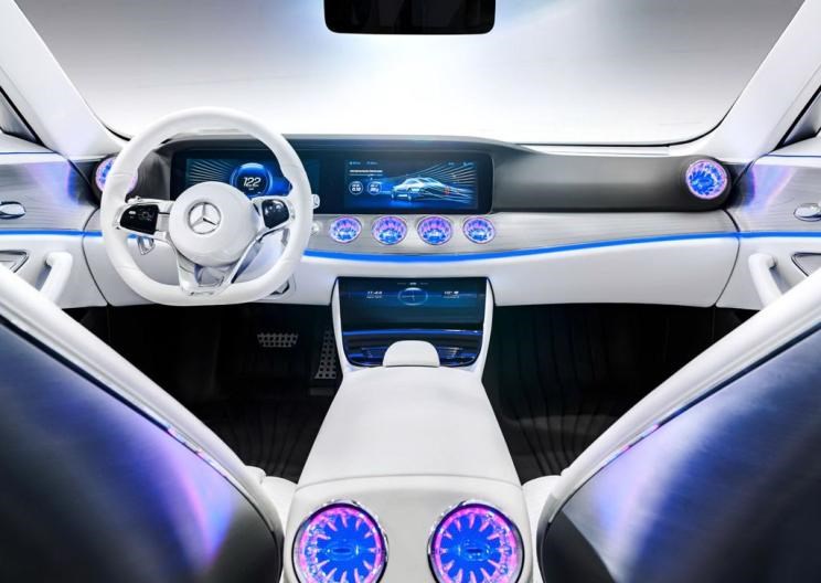 奔驰IAA概念车前脸采用和之前发布的F015 Luxury in Motion概念车相似的设计,横条幅格栅集成了前灯组,中央镶嵌有大尺寸车标。另外,奔驰IAA概念车拥有大尺寸轮圈和倾斜的C柱,车顶采用全透明设计。车尾方面,奔驰IAA概念车具有从车身向后延伸的扰流板,尾灯组采用LED光源。